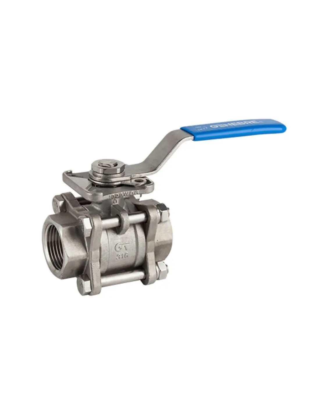 Const.: stainless steel CF8M (316) investment casting. Seats and seals: PTFE +15% GF o’ring stem: viton. PN 63. Temp. -25ºC +180ºC. Manually operated by handle. Direct assembling ISO 5211 with locking system.
