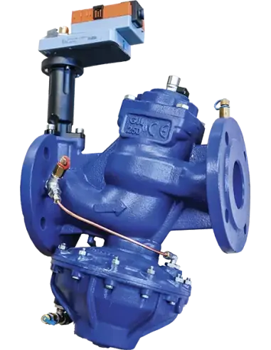 Balancing valve EKOFLUX.PI controls and regulates the flow to appliances or sections of cooling and heating plants.