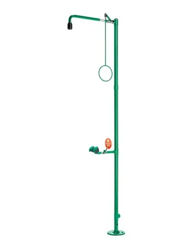 The Industrial safety shower, freestanding, body safety shower with eye shower - ClassicLine - BR 832 085 | B-Safety is the dependable choice for industrial sites where employee well-being cannot be left to chance. Its thoughtful design saves time during emergencies when every second counts. Keep your team safe and prepared with this essential workplace safety feature.