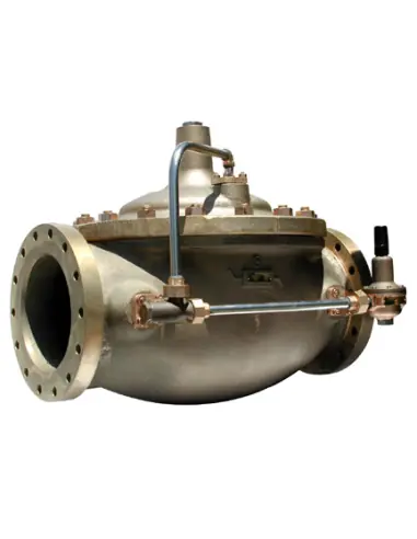 The Cla-Val Model 90M Automatic Pressure Reducing Valve is used in shipboard piping systems, wherever pressure reducing is required. Typical applications include sanitary flushing and evaporator cooling systems.