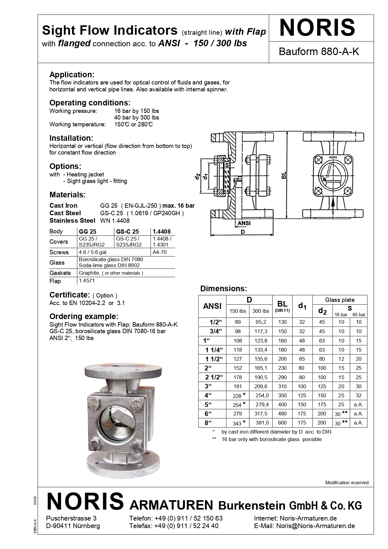 Features & Benefits of Sight Flow Indicators - 880-A-K | Noris Armaturen