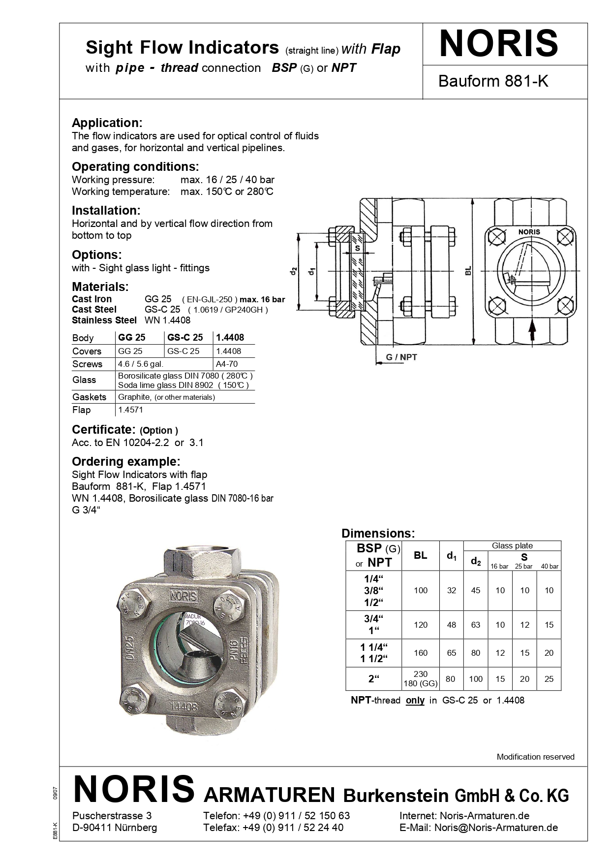 NORIS | sight flow indicator with threaded connection and flap indication NORIS | Bauform 881-K